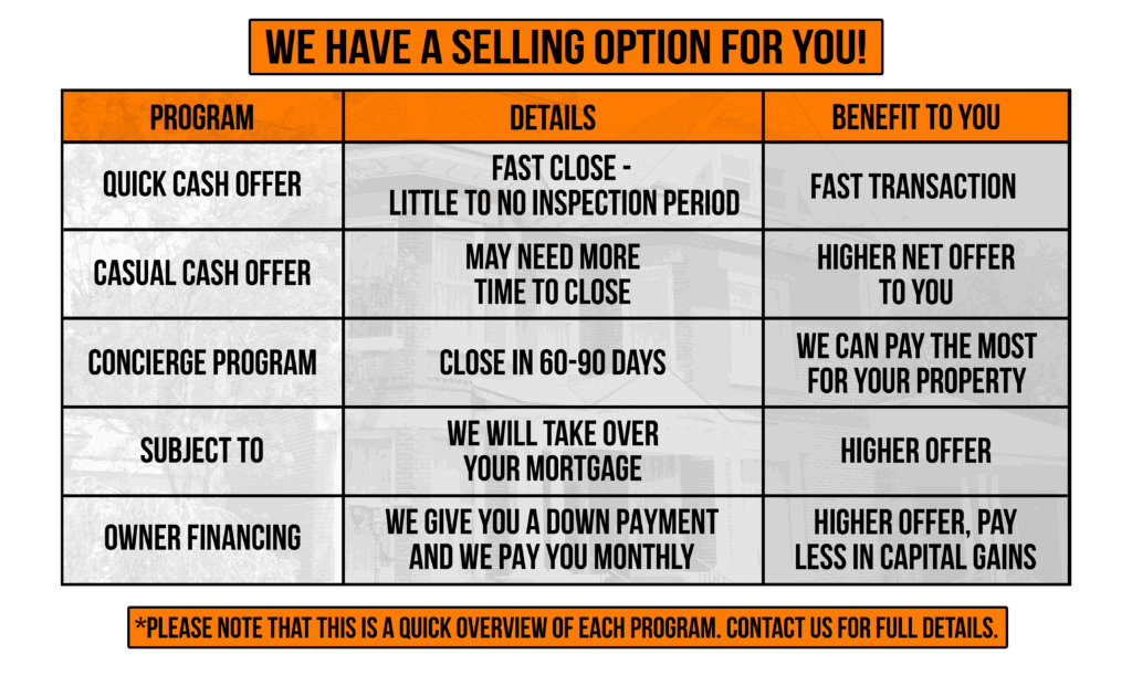 You can get rid of the headache of your property fast and avoid paying one more utility payment, tax payment, insurance payment, mortgage payment, or any of the other costs associated with a home.
